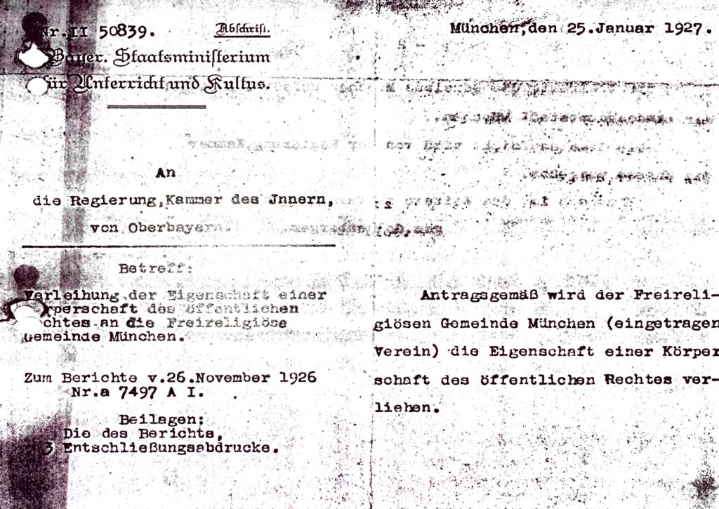 Am 28. Oktober 2020 wird der Bund für Geistesfreiheit München 150 Jahre alt. Seine Wurzeln reichen sogar noch weiter zurück – bis zur Revolution 1848/49. Am Samstag, 31. Oktober 2020, werden wir den Geburtstag im EineWeltHaus, Schwanthalerstr. 80, ab 19 Uhr feiern. Zum hundertjährigen Bestehen des Bund für Geistesfreiheit (damals noch Freireligiöse Gemeinde München) im […]
